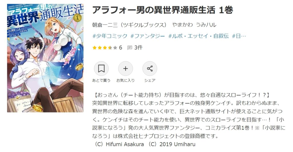 - 1 『アラフォー男の異世界通販生活』を安く買う・安く読む方法!漫画が安いサービスまとめ一覧